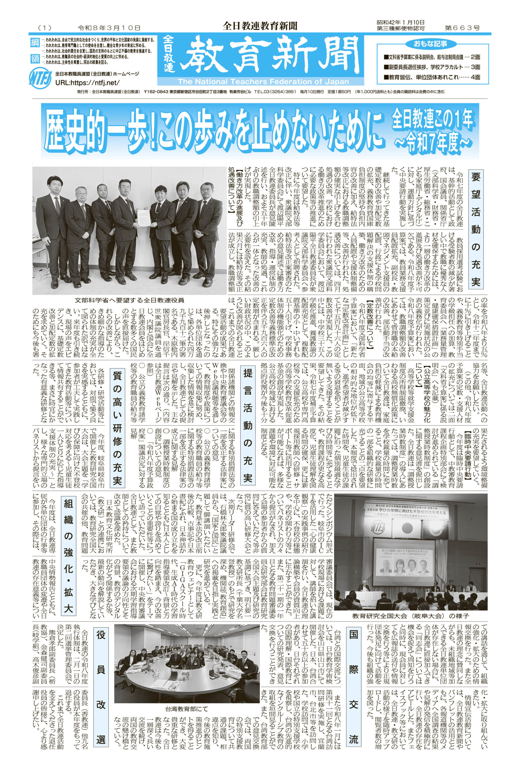 昭和59年2月26日、全日本教職員連盟は結成されました。われわれは教育専門職としての使命を自覚し、中正不偏の教育実践を通して、国民の信頼に応えるとともに、自由で民主的な社会を創造する教職員団体、「『美しい日本人の心を育てる』 教職員団体」 の創造を目指し、全日教連の旗のもとに結集したのでした。