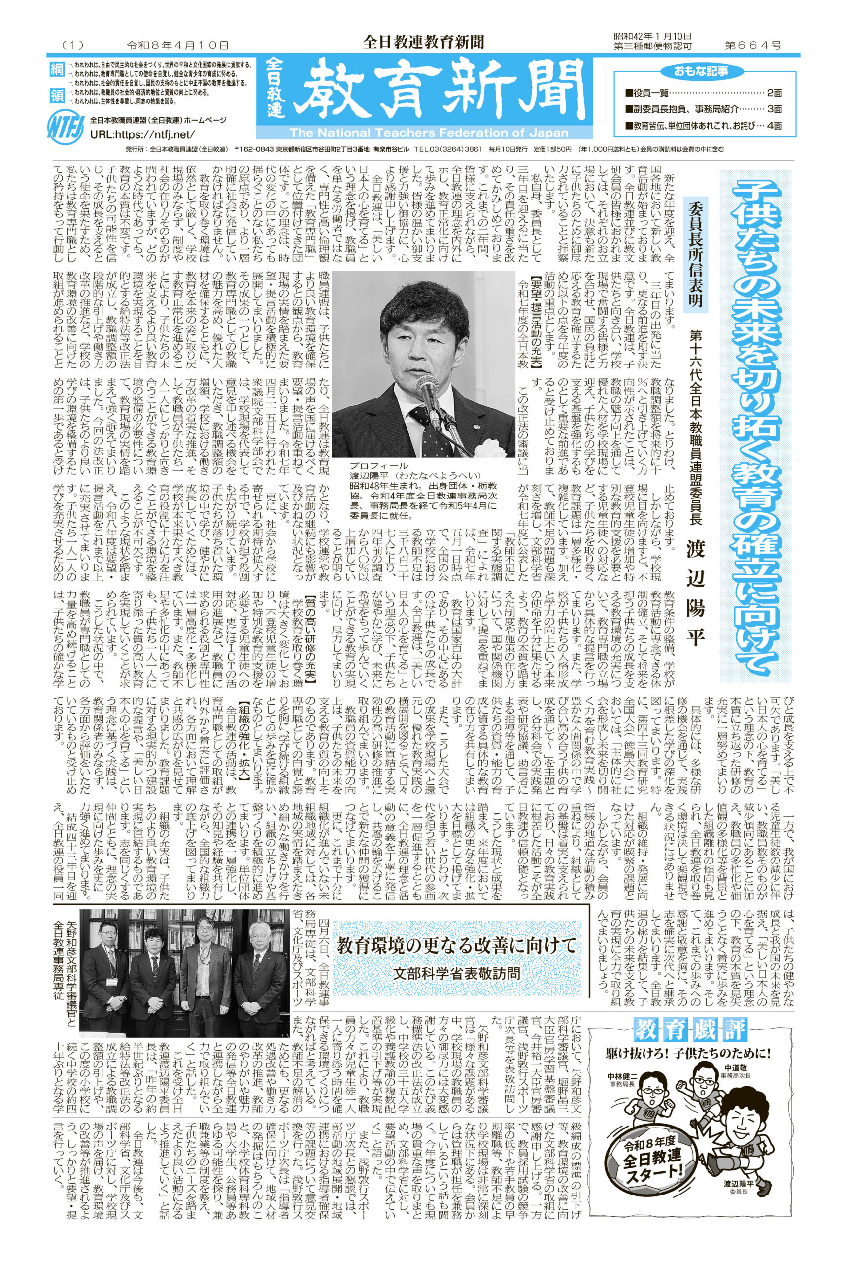 令和8年度 全日教連教育新聞4月号